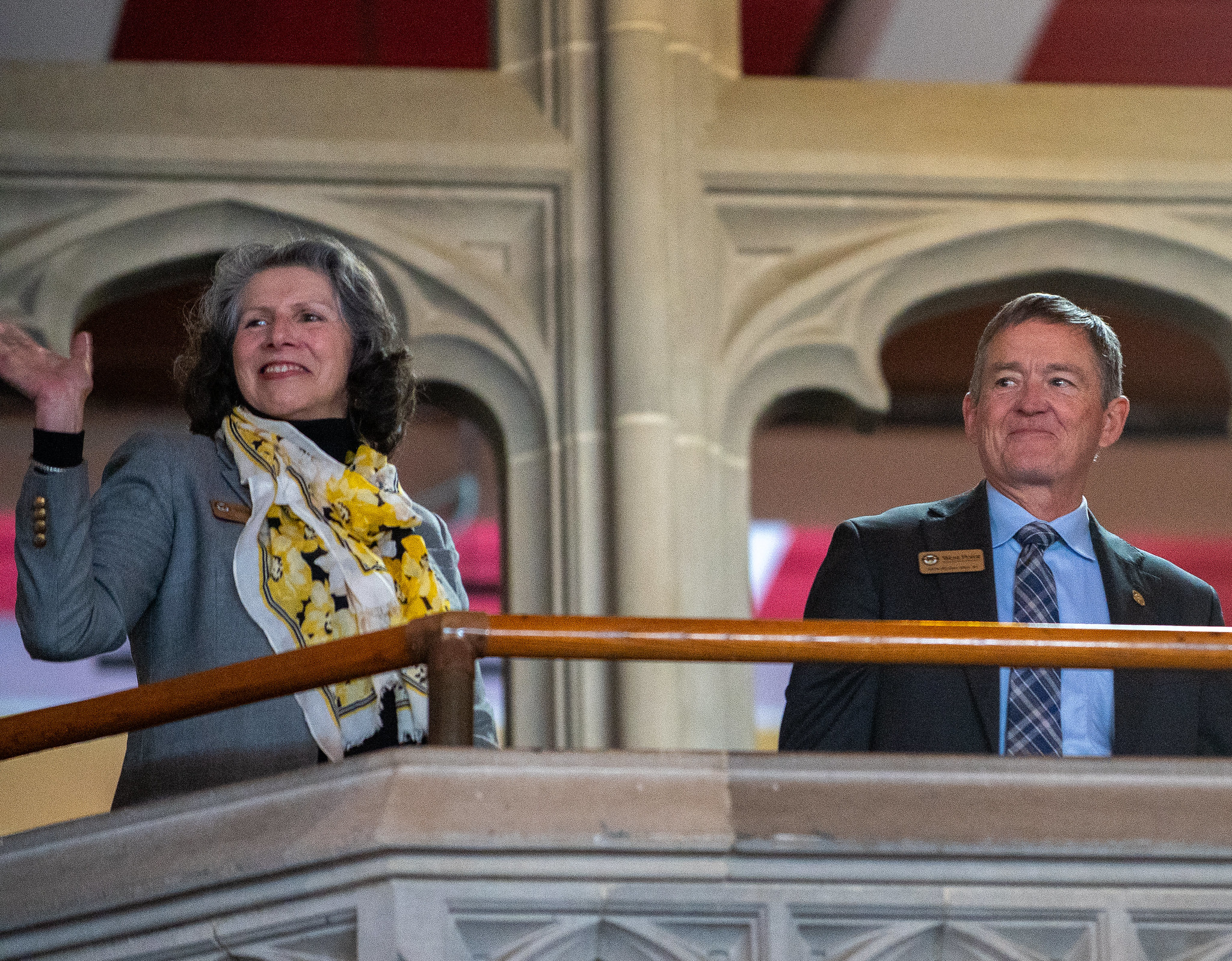 Distinguished Graduate Award (DGA) recipients Mrs. Marene Allison ’80 and GEN (R) Dan Allyn ’81 visited their Rockbound Highland Home as part of an ongoing effort to link distinguished graduates with the Corps. Allison and Allyn spent their morning interacting with cadets around post and seeing some of the amazing innovations and new technologies in the Electrical Engineering & Computer Science department (EECS) and Simon Center for the Professional-Military Ethic (SCPME).