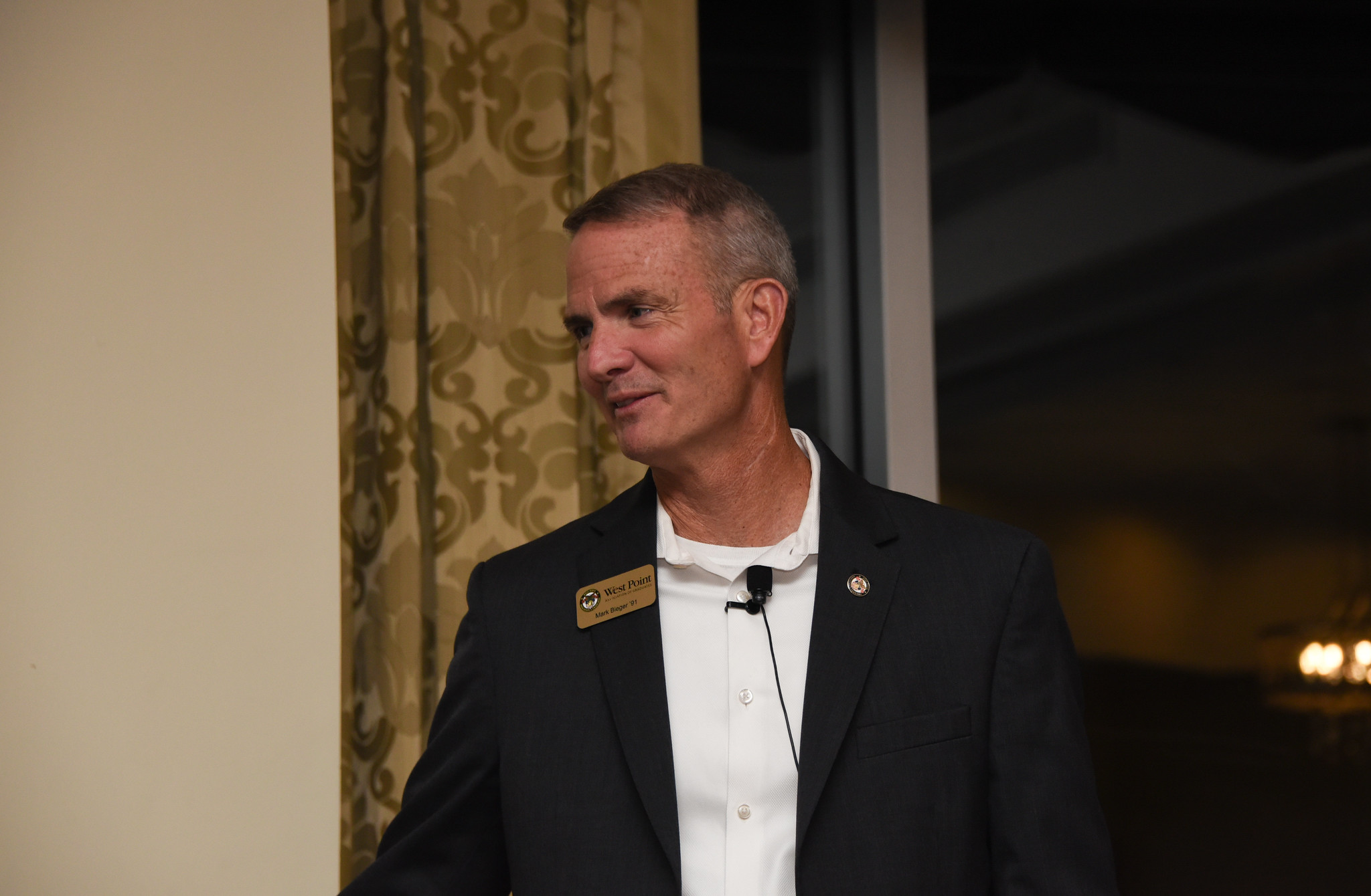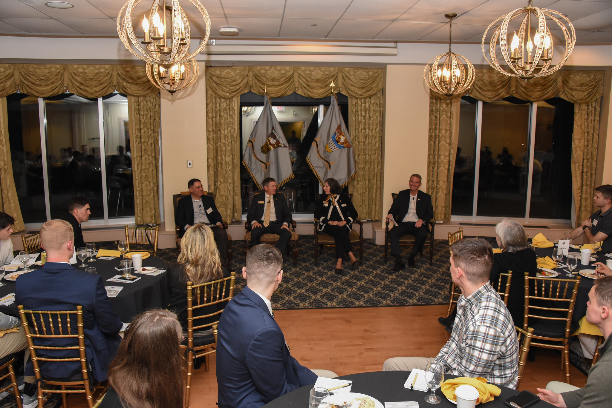 The main event was a dinner and intimate fireside chat amongst cadet leadership. BG R.J. Garcia ’96, 81st Commandant, U.S. Corps of Cadets, and COL (R) Mark Bieger ’91, WPAOG President and CEO, led the discussion and a Q&A session with Allison and Allyn. Topics included their times as cadets, their military careers, and how they took what they learned from both West Point and the Army and applied those lessons in their lives post-military.