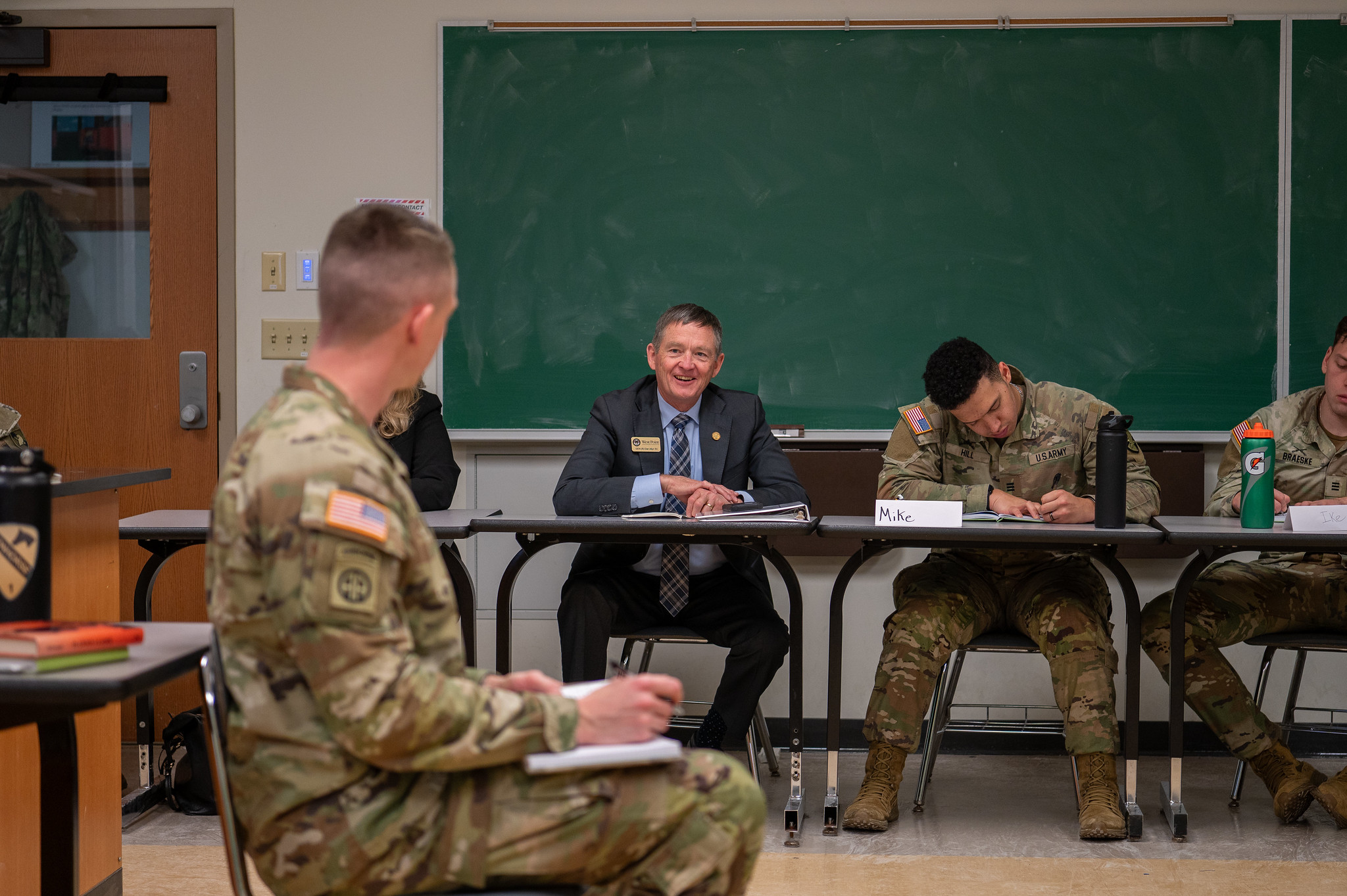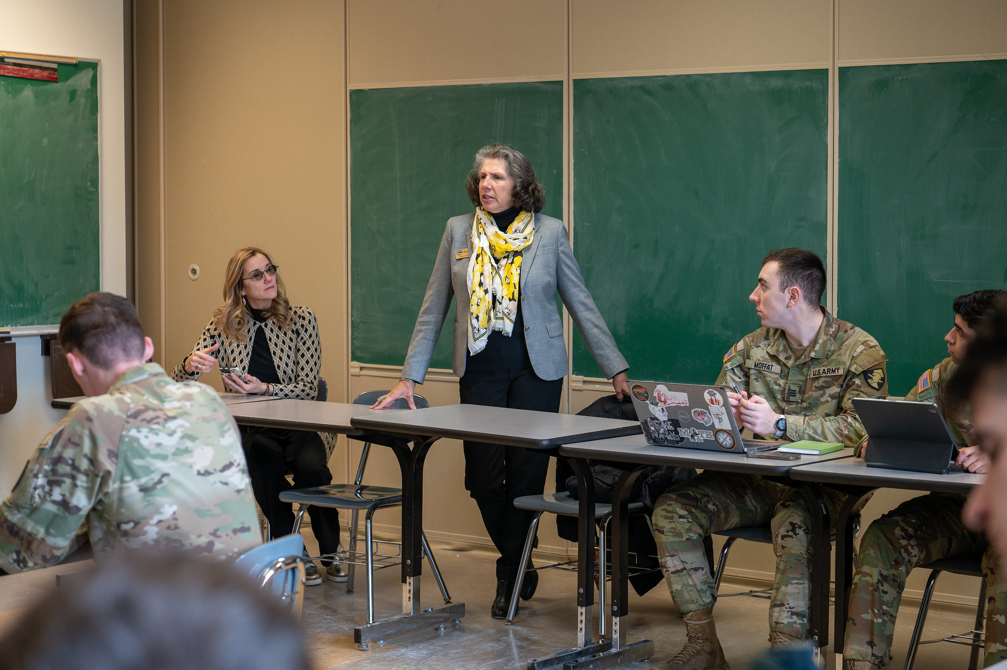 From the Poop Deck at the Mess Hall during lunch, cadet leadership announced Allison and Allyn to the Corps, where they received cheers of respect and admiration from the cadets below. They also participated in an MX400 class, the Superintendent’s capstone course that empowers cadets to understand and embrace their ongoing development as leaders of character and their emerging identities as Army officers who apply critical thinking in complex situations and interdisciplinary solutions to complex military problems.