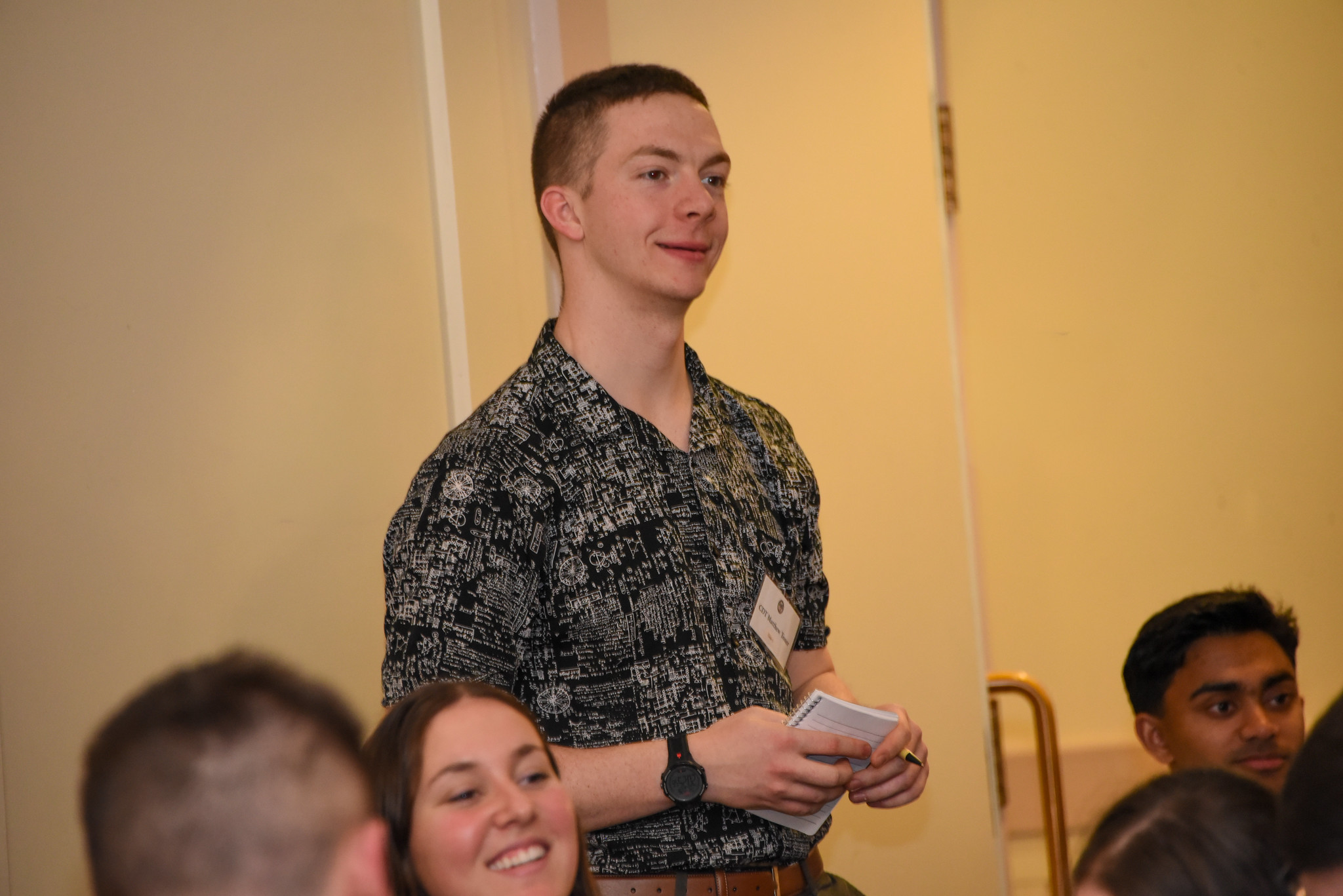 Cadets throughout the room took notes during the discussion, and a few posed questions, allowing them to dig further into the wisdom that Allison and Allyn shared. Allyn had some advice for the cows and firsties.