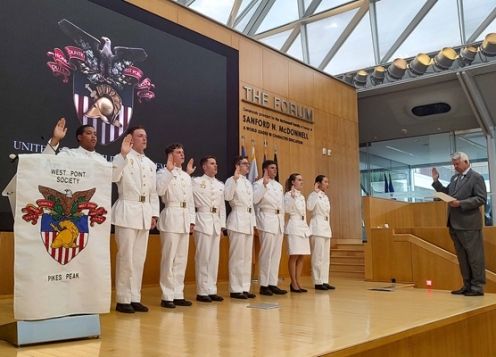 The West Point Society of the Pikes Peak Region reports that eight members of the USMA Class of 2025, 2d Class Cadets, took their Oath of Affirmation at a ceremony on August 22, 2023 at Polaris Hall on USAFA. The eight members included Spencer Bush, E1; Lauren Guth, A3; Glen Hogan, B4; Erick Rodriguez, B4; Carlton Spivey, E4; Nicholas Clendenen, F4; Landon Coker, G4; and Taylor Whepley.