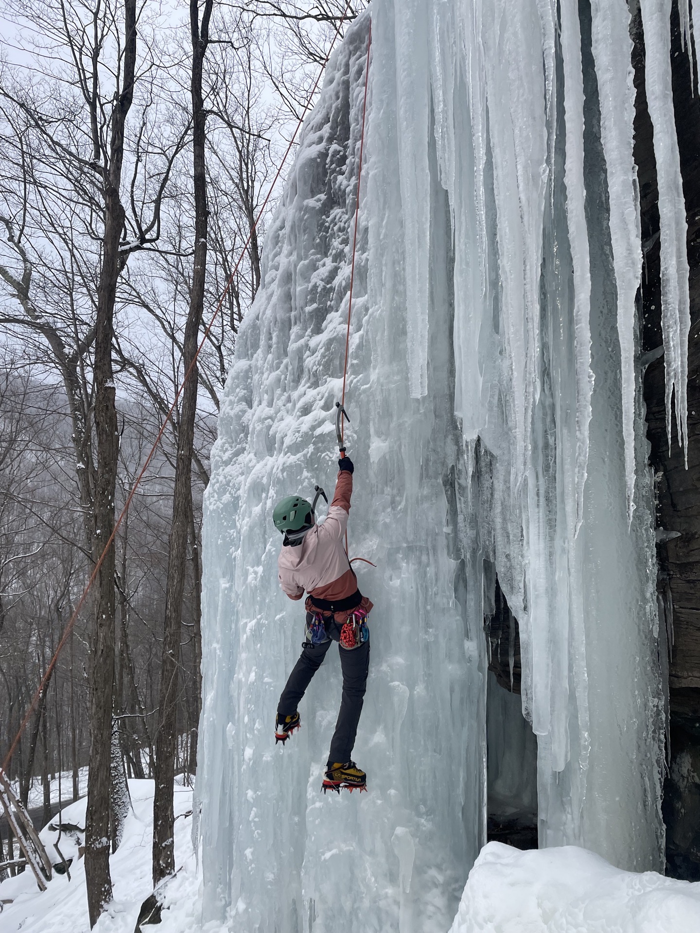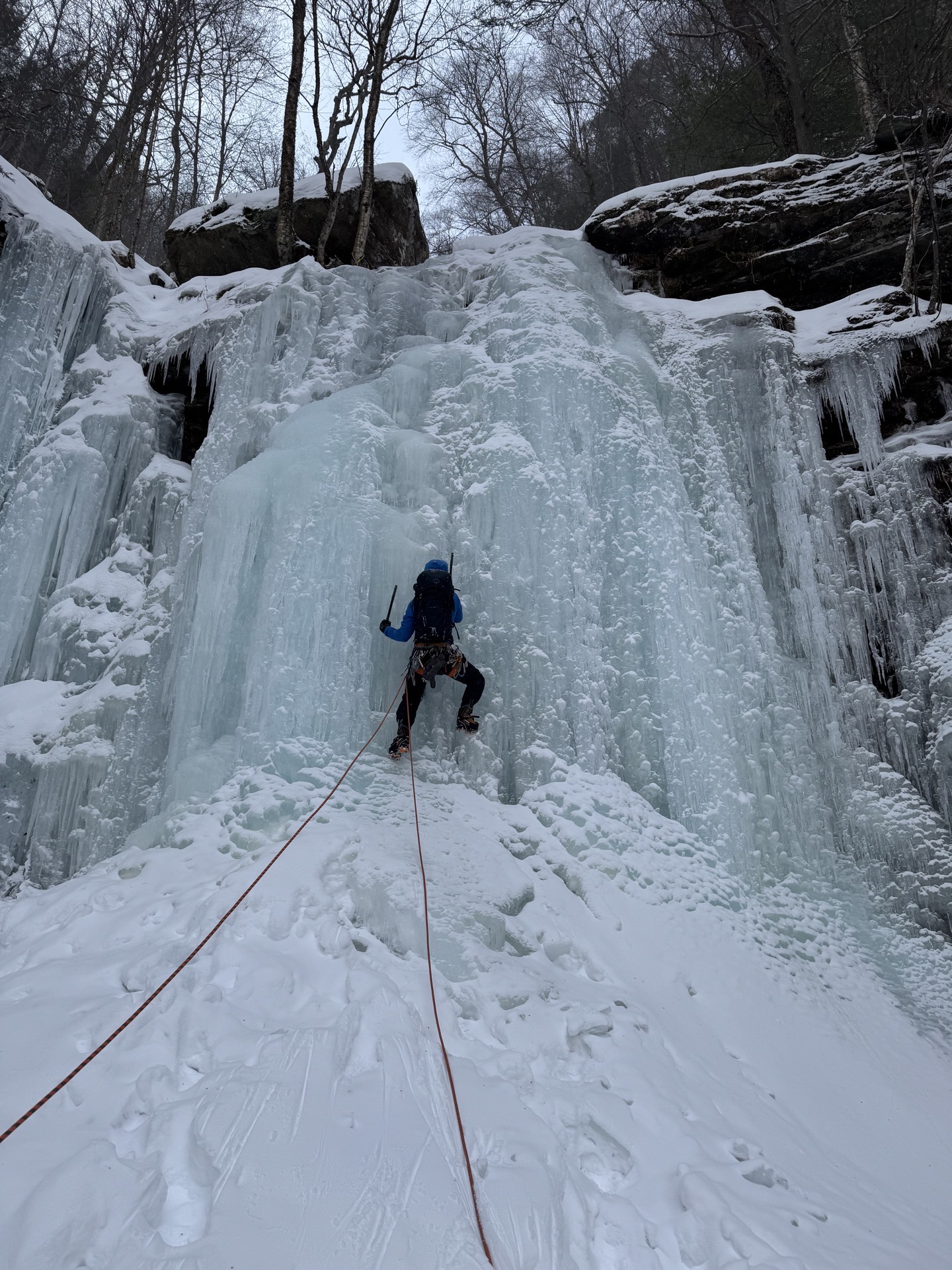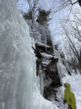 Highlights of the trip included Cadets Walker Blackmon ’26 and Jake Chaffin ’29, who followed their first multi-pitch ice route at Buttermilk Falls, a premier multi-pitch outing, typically offering 6 pitches of climbing.