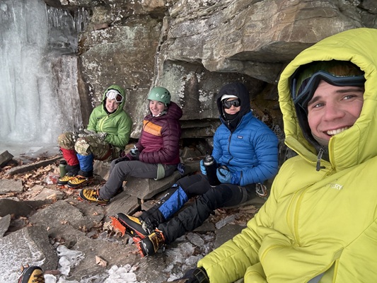 “One of the really important skills for multi-pitch ice climbing is learning to be an effective second climber or ‘follower,’” Blackmon said. “We are really fortunate to have some skilled coaches to lead us up the climbs, but one of the skills we had to practice was learning to pace ourselves for a full day of climbing. We also learned more technical skills like rappelling down climbs to return to the start, how to properly use an ice axe and crampons, and how different weather conditions affect what kind of equipment you might use.”